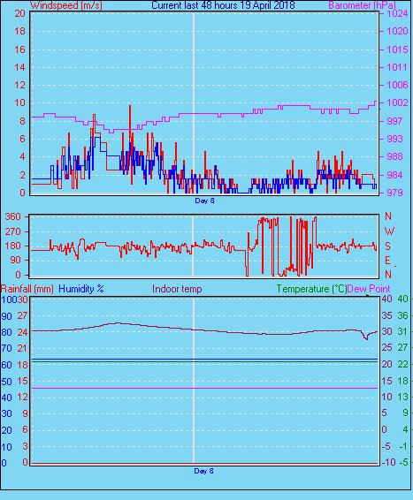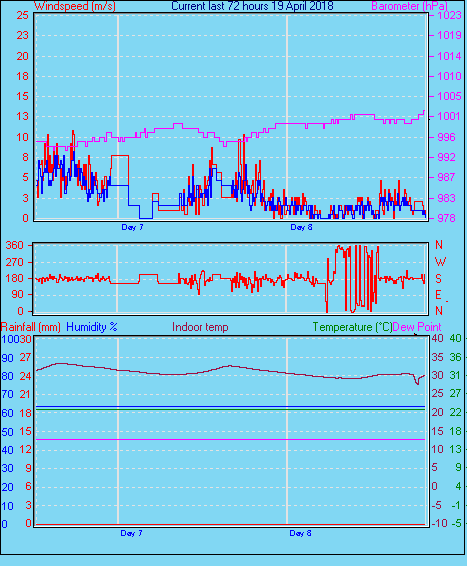 | Humidity | 28 %, Humidex 5.6°C | Barometer corrected to msl | 987.7 hPa |