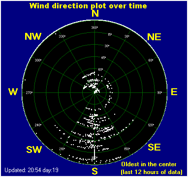 | Average windspeed (ten minute) | 3.0 m/s | Wind Direction (ten minute) | WSW (242°) |