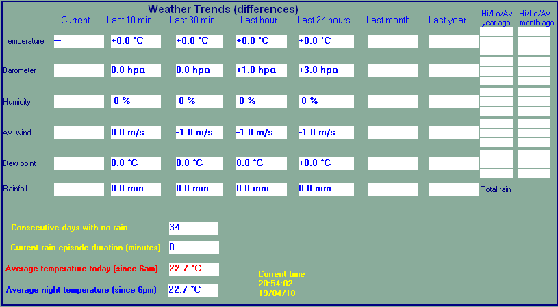 | Pressure change | -2.1 hPa (last hour) | Trend (last hour) | FALLING |